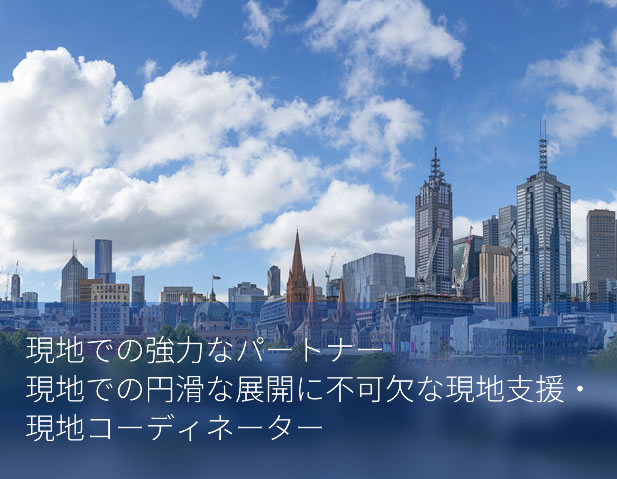 JTIMの現地支援サービスでは、オーストラリア、特にメルボルンの現地の事情に精通した現地コーディネーターが、現地での実務支援を的確に行い、異文化コミュニケーションの橋渡し役としてお客様の手足となって対応します。